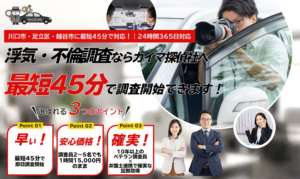 足立区でおすすめの探偵社1社目は、カイマ探偵社です。