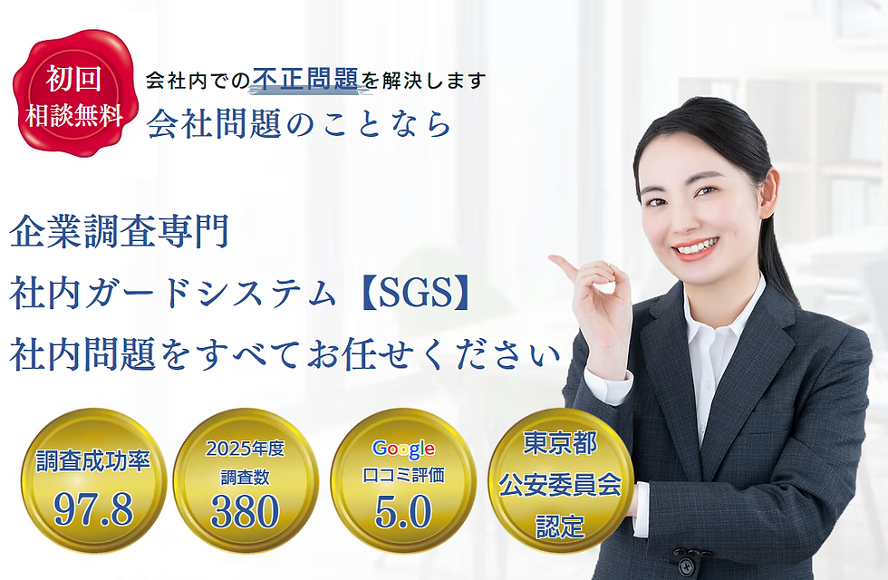 取引先の不正調査を依頼したい場合は、企業調査に強い社内ガードシステム【SGS】に依頼するのがおすすめです。